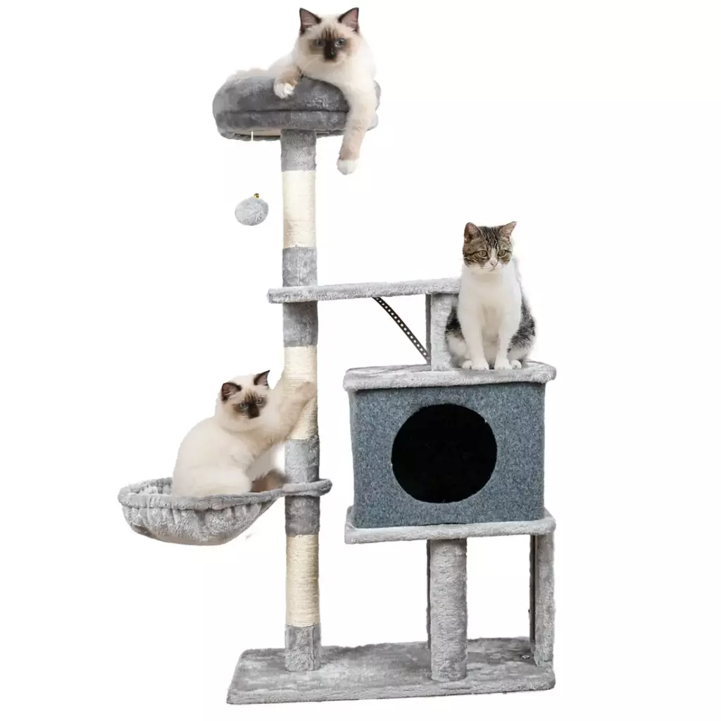 Condomínio para gatos confortável de 3 andares: um dos destaques da árvore alta para gatos é uma casa para gatos de 3 andares, projetada com 3 entradas, permitindo fácil acesso mantendo o espaço seguro e privado.O interior da casinha para gatos apresenta uma almofada macia, oferecendo aos gatos um local cozy para relaxar e rejuvenescer.