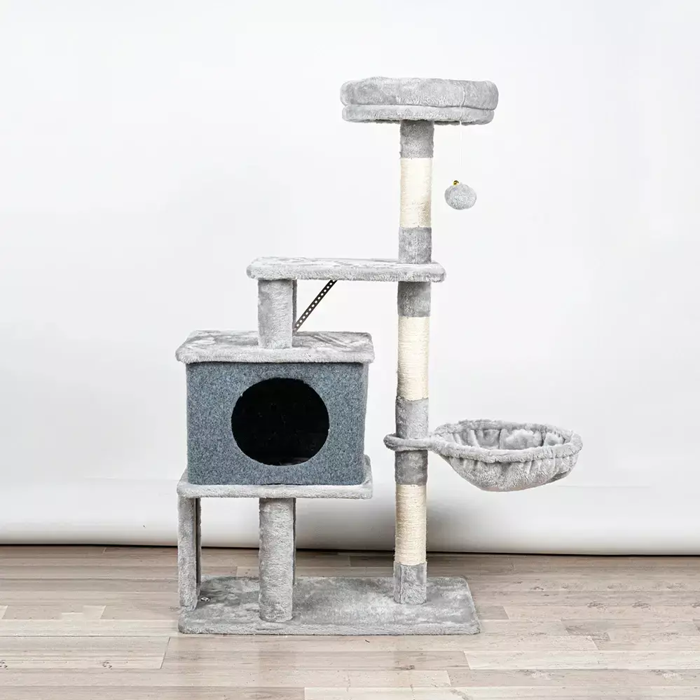 Priorize estabilidade: Feita de madeira maciça laminada em várias camadas, uma moderna árvore para gatos apresenta excelente resistência.Além disso, uma base larga garante estabilidade superior para evitar tomamentos acidentais.Enquanto isso, o risco de possíveis arranhões no piso será eliminado graças às almofadas antiderrapantes.
