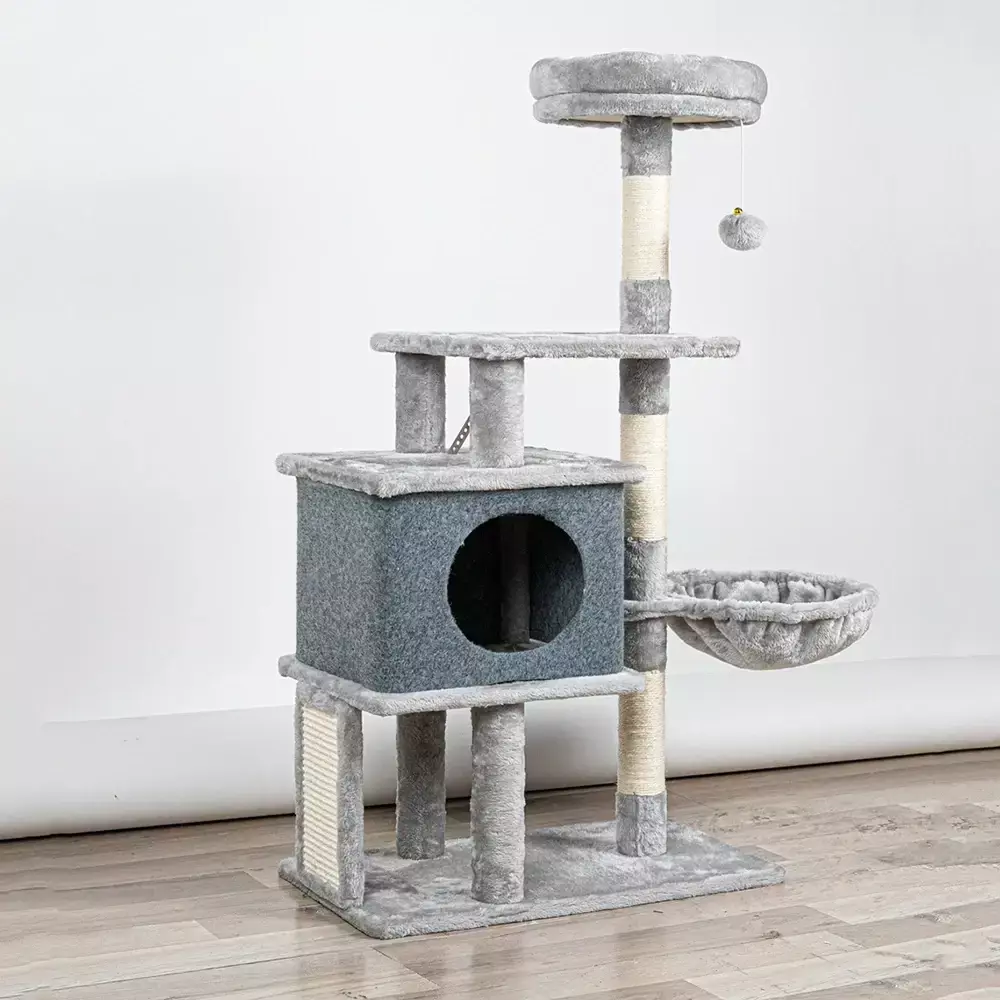 Centro de brincadeiras multifuncionais para gatos: Com 3 plataformas de salto, um torre para gatos oferece muito espaço para seus amigos felinos pularem.Além disso, dois poleiros e uma cama de dormir proporcionam um espaço de descanso local e aconchegante para seus companheiros peludos.Além disso, há uma bola de mola e uma corda pendurada para proporcionar horas de diversão.