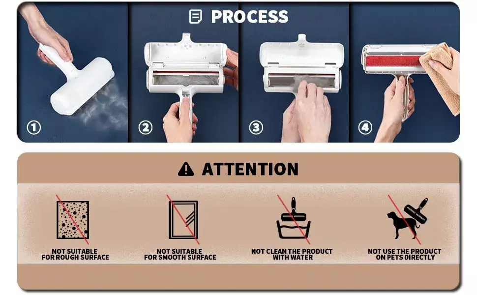 REUTILIZÁVEL -Se arrancar centenas de folhas de rolo de fiapos for uma pele de animal de estimação durante a limpeza, dê uma só vez à nossa ferramenta de remoção de pêlos de animais de estimação.Não requer fita adesiva, então você pode usá-lo repetidamente.